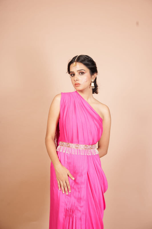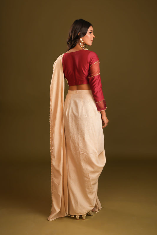 GOLDEN MALLIKA PRE-DRAPE SAREE WITH BLOUSE