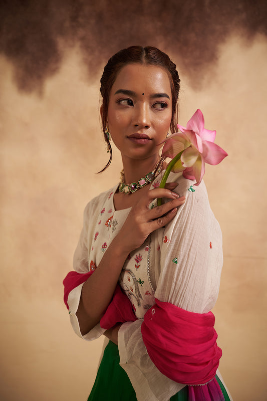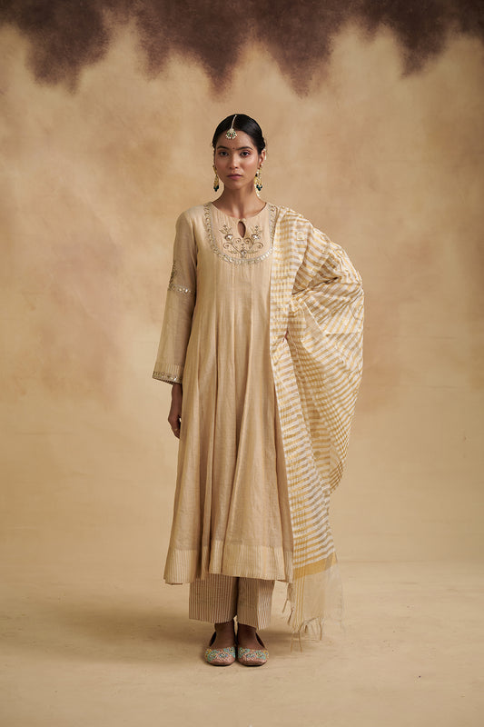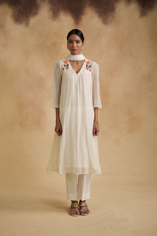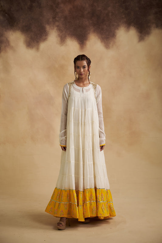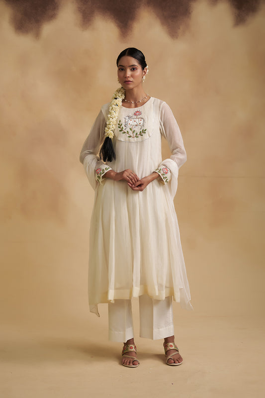 Ivory Mul Chanderi Anarkali Dress