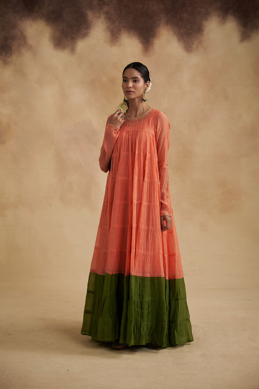 Peach Mul Chanderi Anarkali Dress