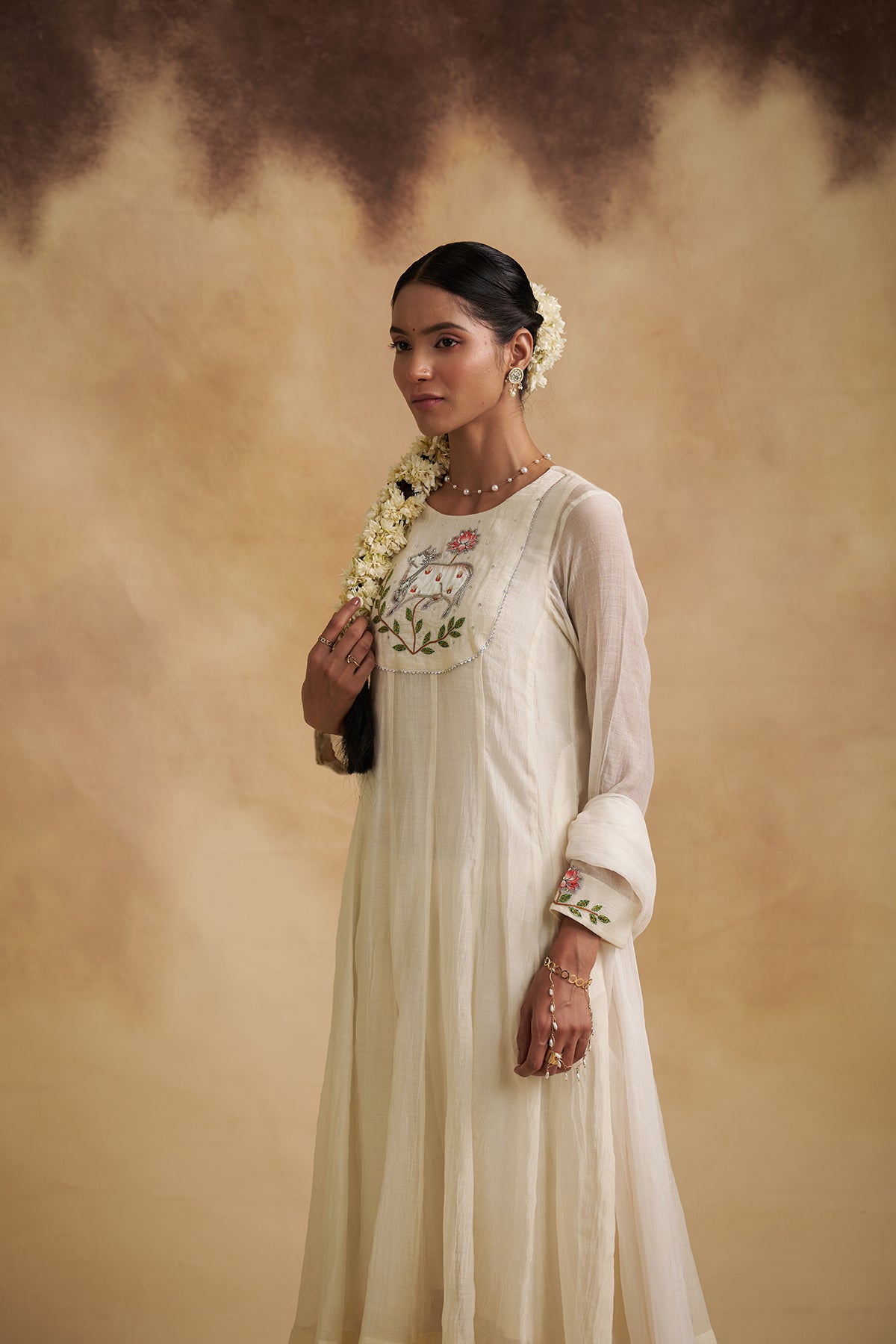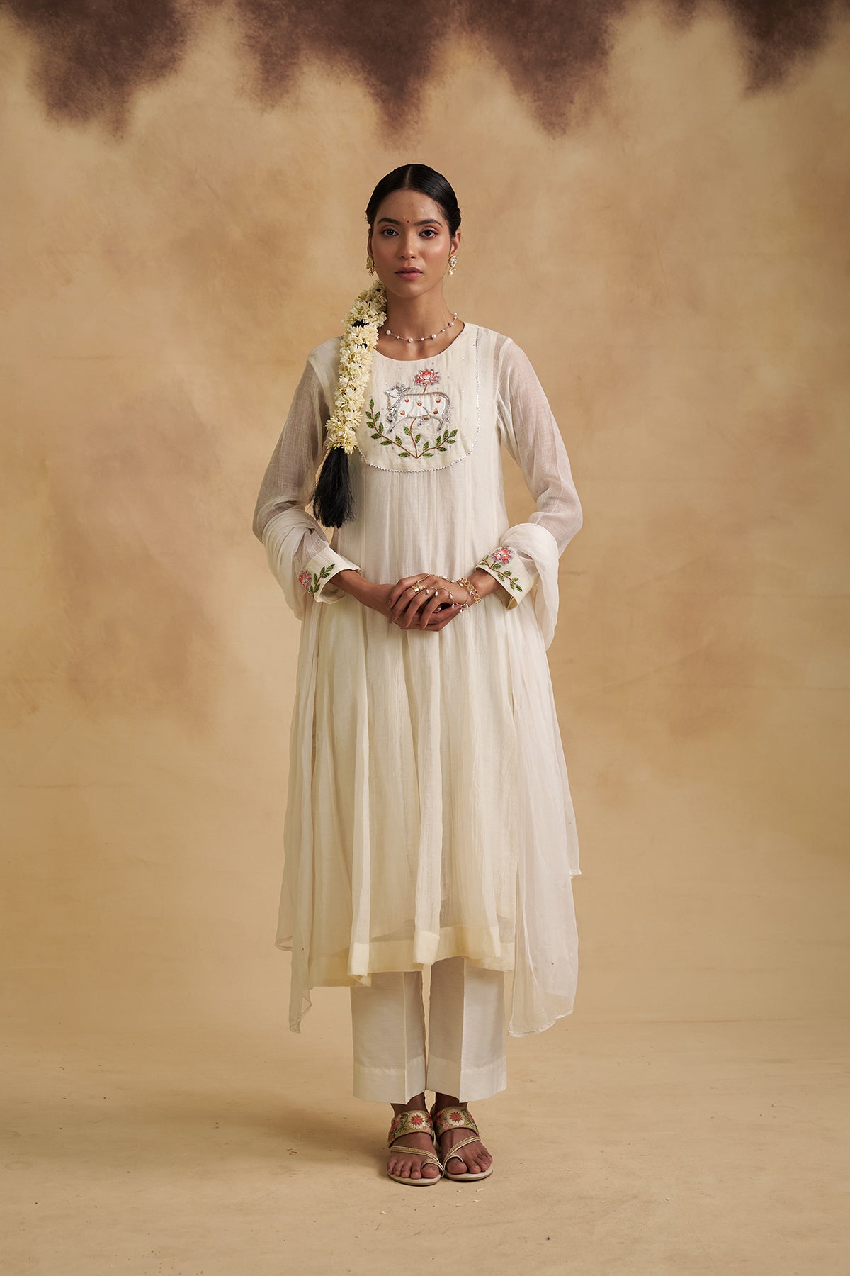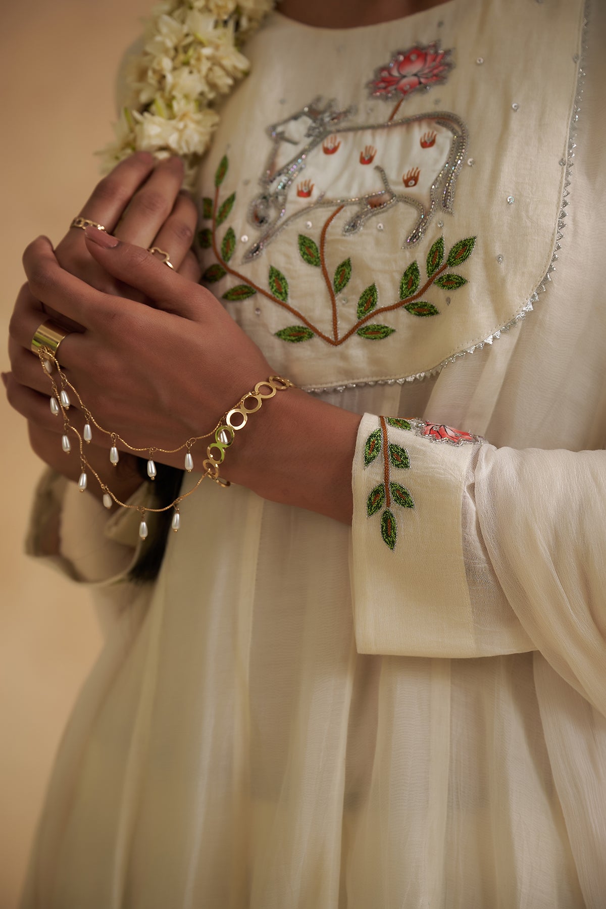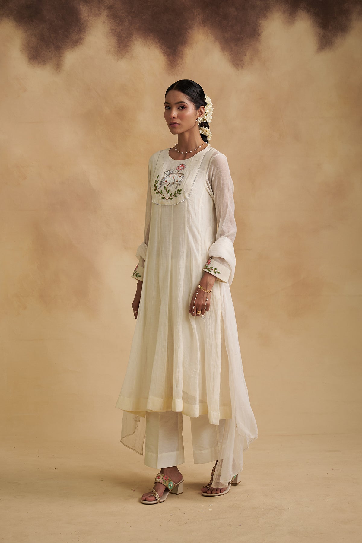 The neck and sleeves are beautifully highlighted with Resham/Zari thread work and Sequins Cheeta. Suit is an ideal choice for festive celebrations or special occasions. This suit comes with Chiffon Dupatta having Cheeta work and Gota Patti lace detailing. Note: All our dresses come with inner linings or slip.
