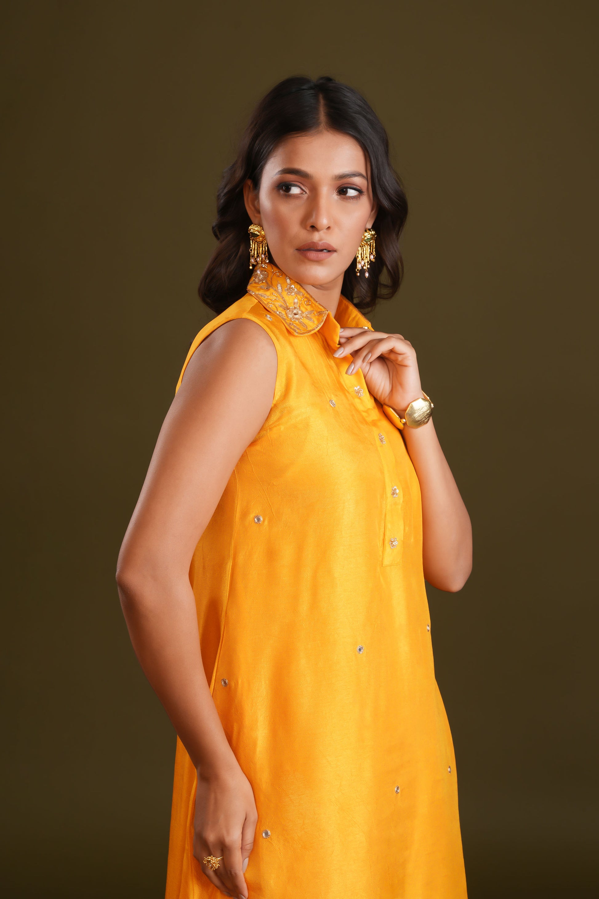 MUSTARD YELLOW EMBELLISHED TUNIC SET