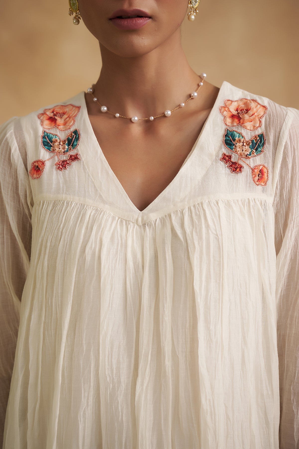 The suit has detailing with sequins and pearls along the neckline. It's a good addition to your summer staples and comes with Chiffon Dupatta having Sequins cheeta handwork Note: All our dresses comes with inner linings or slip.