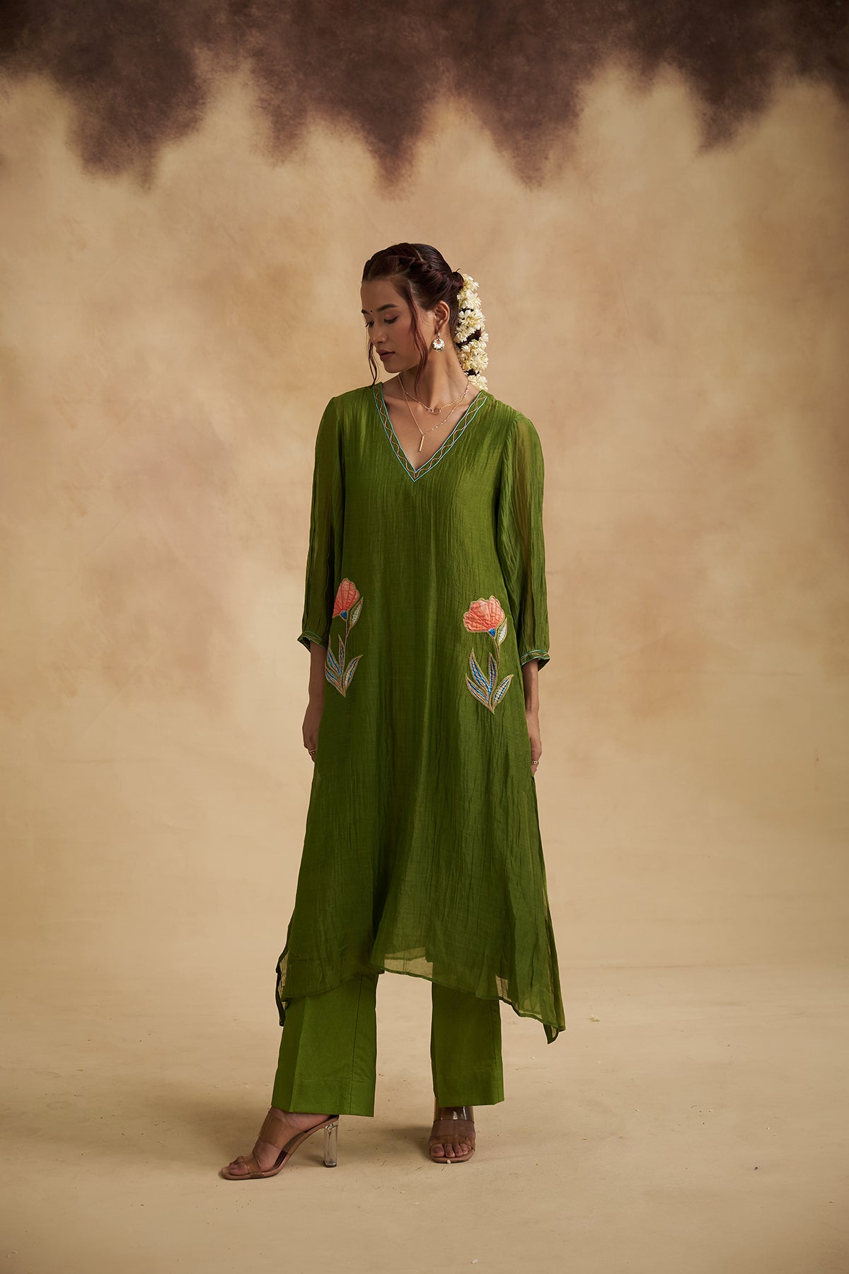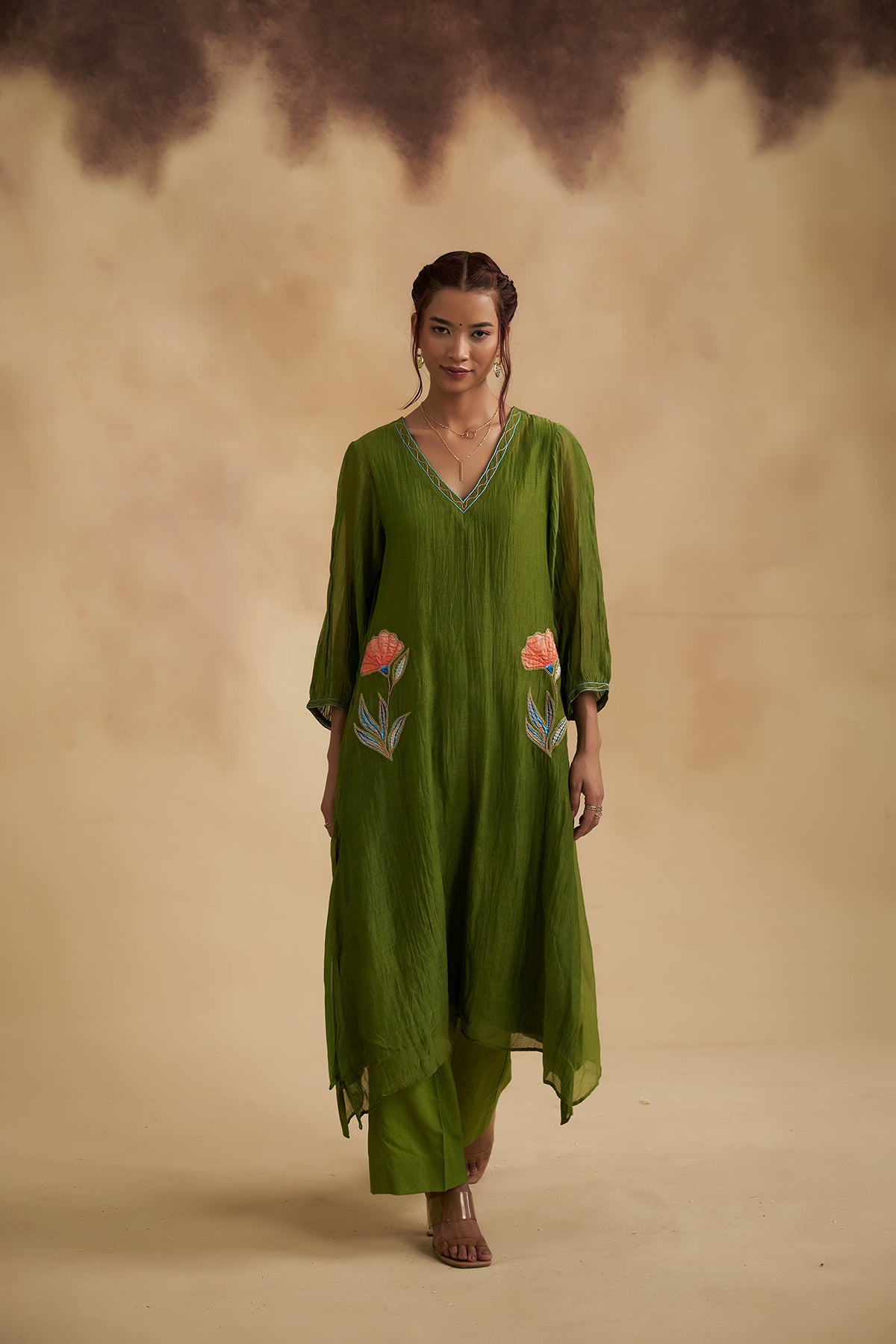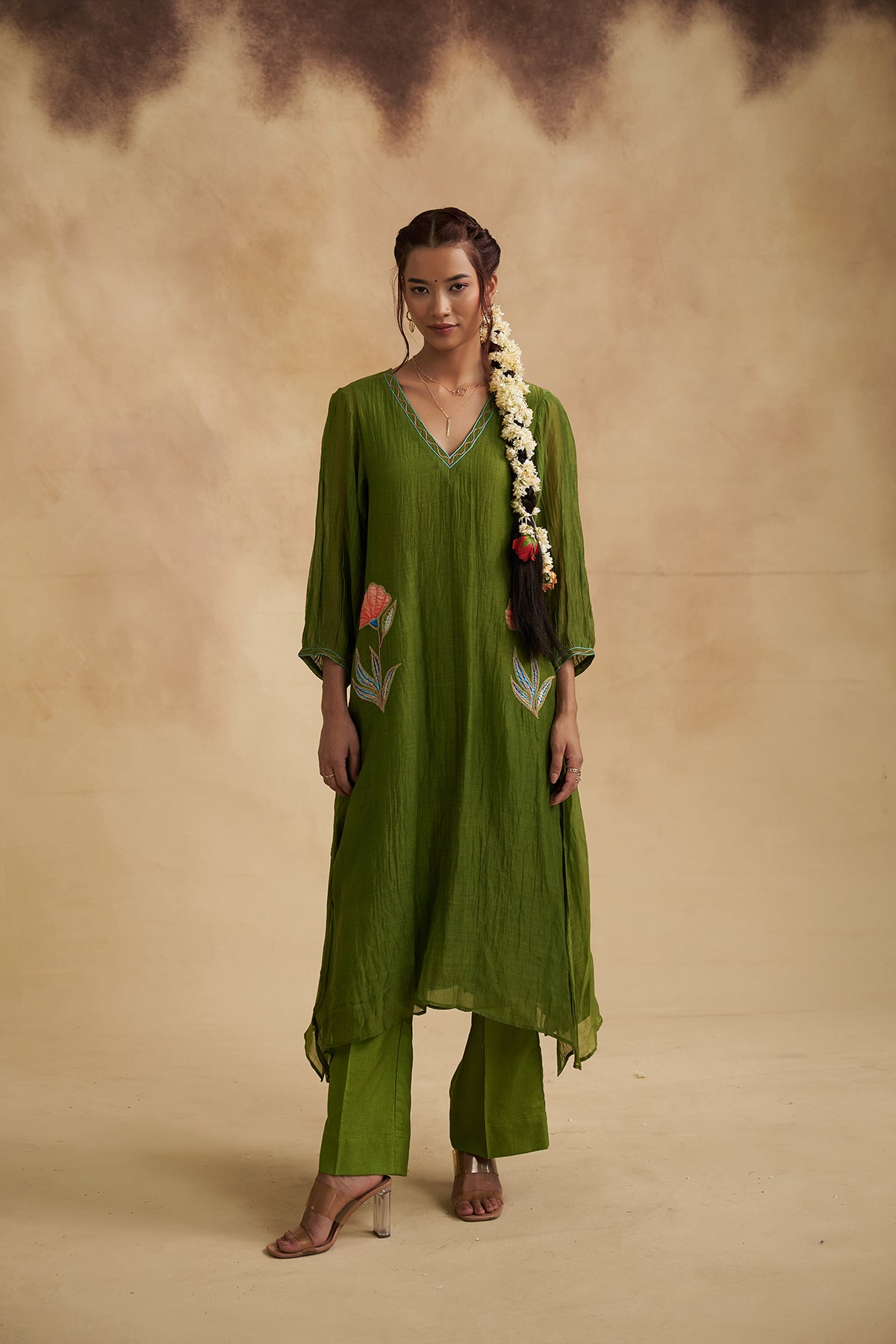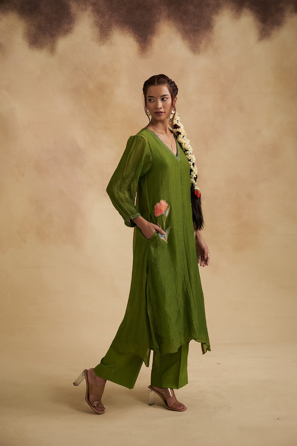 The suit has detailing of sequins and pearls along the neckline, side pockets and sleeves. It's a good addition to your summer staples. Note: All our dresses come with inner linings or slip.