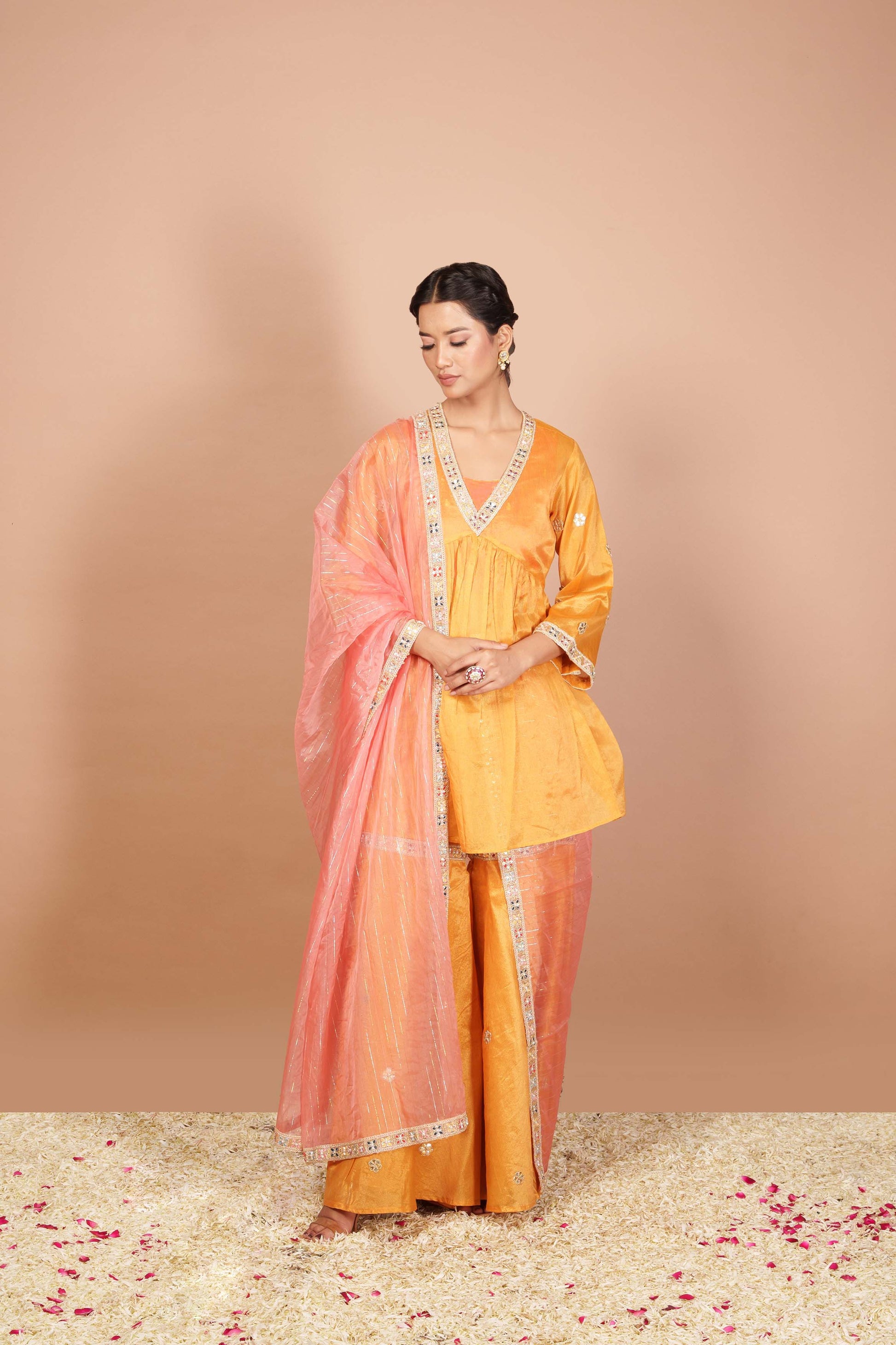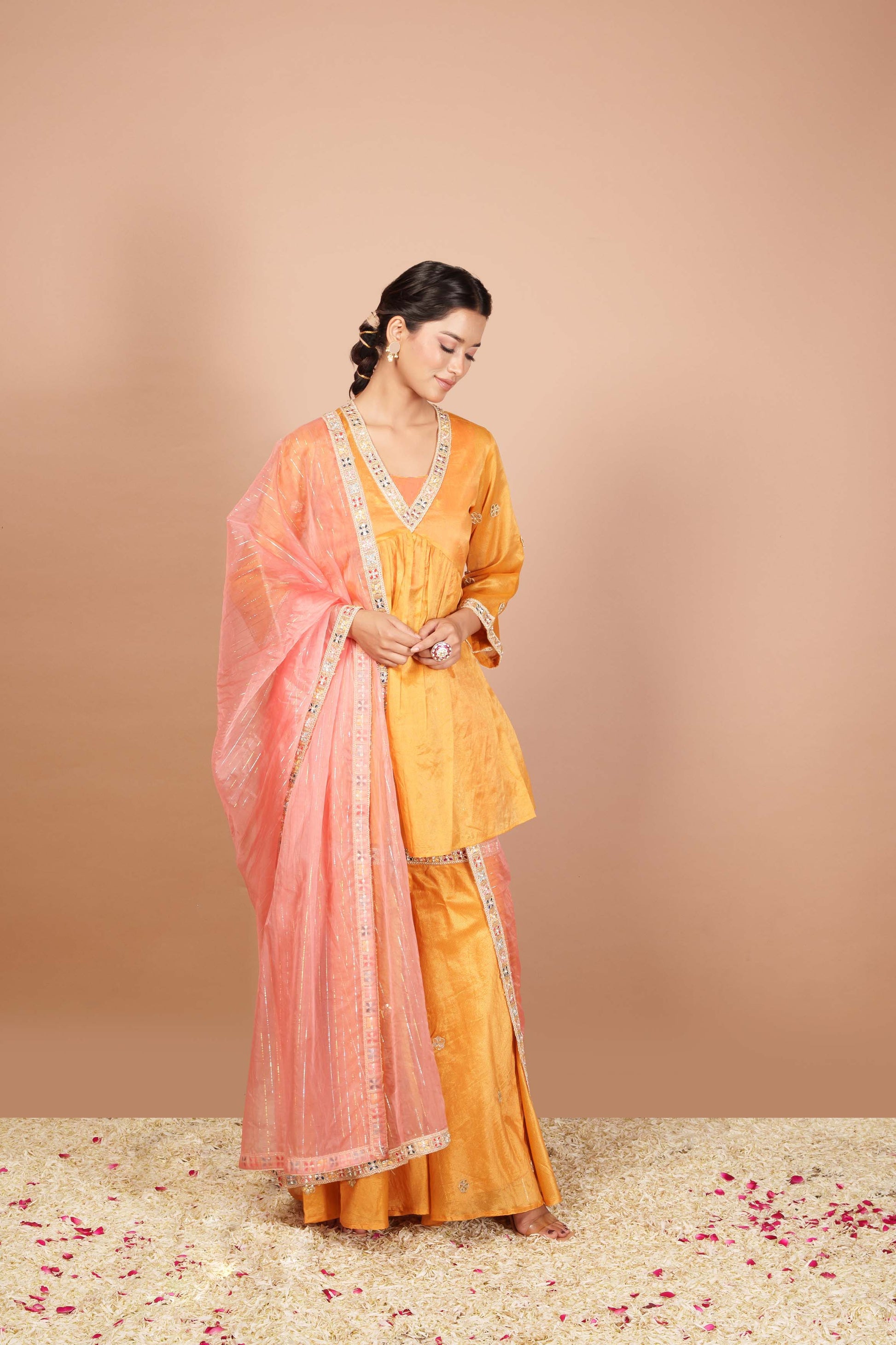 Introducing the Shagun Fusion Set, designed for the woman who embodies good luck and radiates positivity wherever she goes. This exquisite ensemble is a celebration of charm and fortune, ensuring that things fall into place just by her presence. The Shagun Fusion Set combines contemporary style with traditional elements, creating a versatile outfit perfect for any occasion. With its unique design and thoughtful details, this set captures the essence of celebration and joy. Wear the Shagun Fusion Set as your lucky charm, and let your vibrant energy inspire those around you. Celebrate life’s moments with elegance and flair!