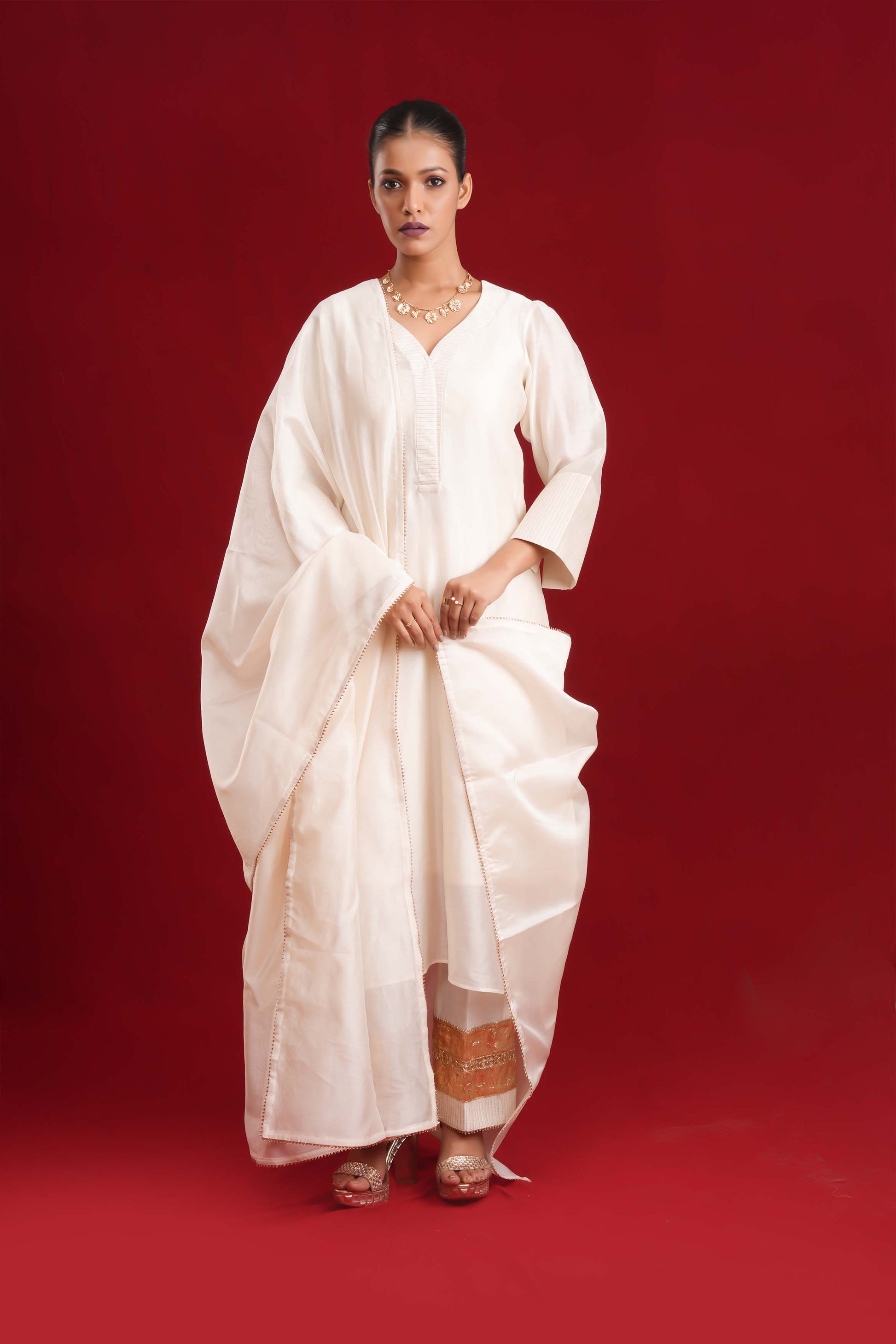 WHITE ROYAL SILK SUIT SET